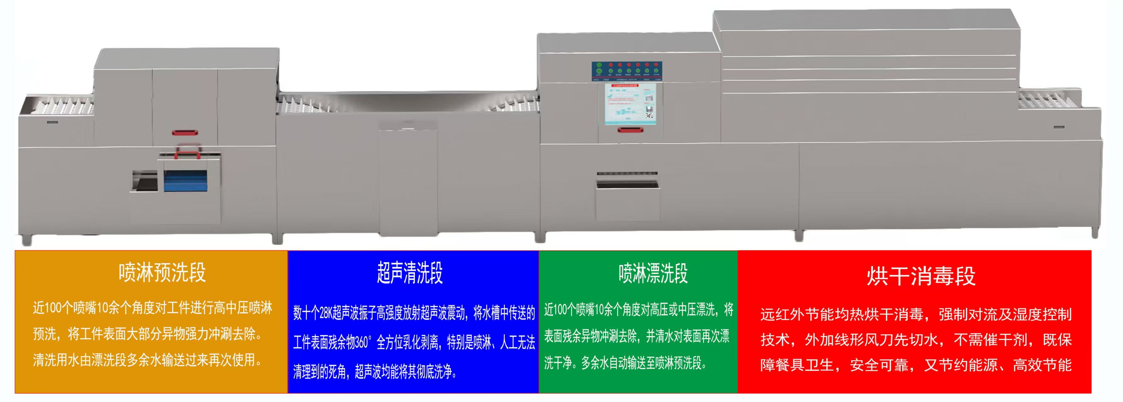 上超全自動(dòng)超聲波洗碗機(jī):學(xué)校飯?zhí)酶咝н\(yùn)作與健 一、高效清洗,節(jié)省人力?學(xué)校飯?zhí)糜貌腿藬?shù)集中且數(shù)量龐大,每餐結(jié)束后堆積如山